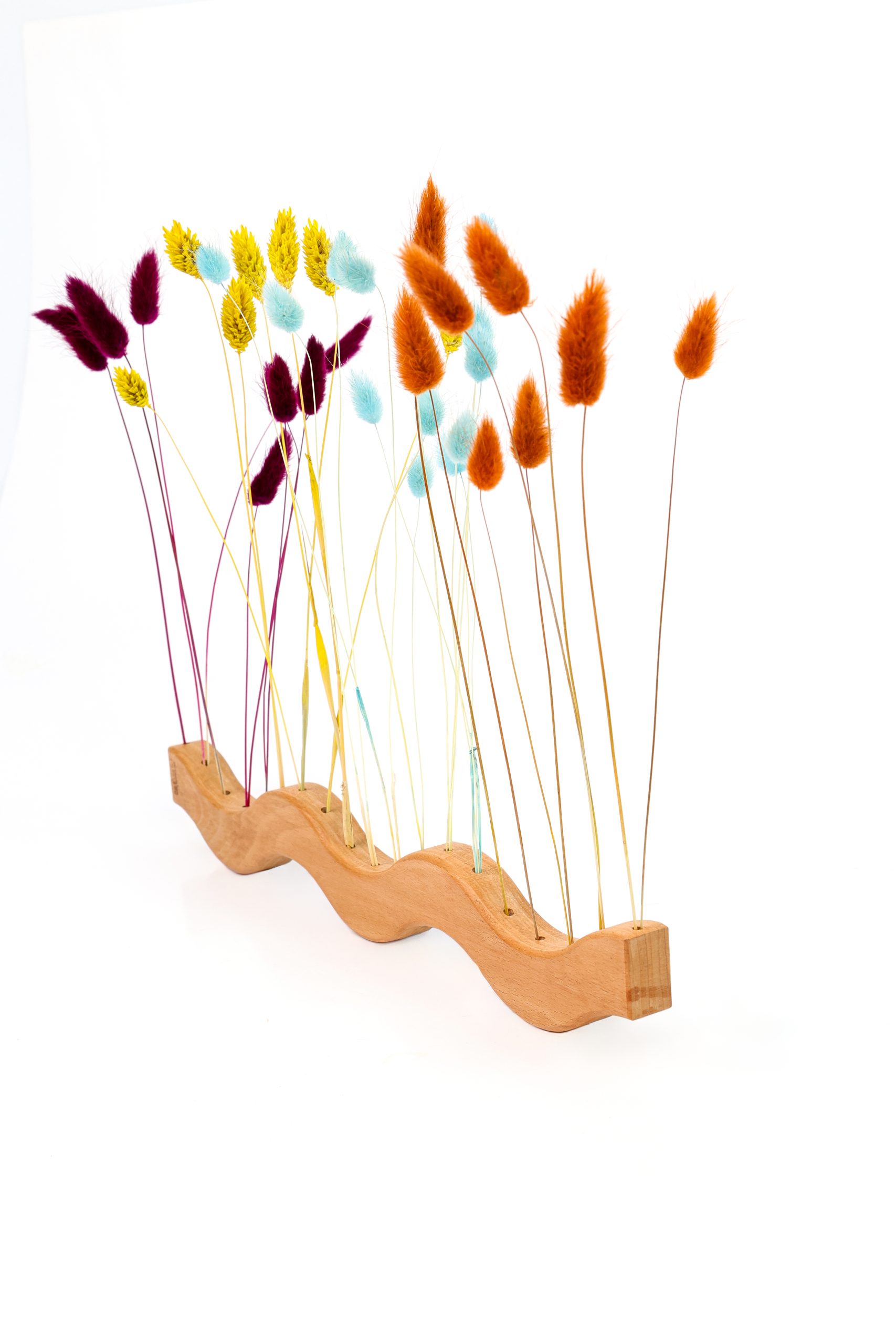 Bu şık dalgalı ahşap çerçeve, zarif ve renkli bitkilerle her mekânda göz alıcı bir dekor oluşturur. Doğal ahşap dokusu ve canlı renk tonlarıyla iç mekânlara sıcaklık ve estetik katar. Hem modern hem de rustik dekorasyon stillerine uyum sağlayan bu ürün, dikkat çekici bir tasarıma sahiptir.