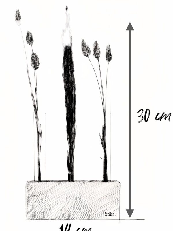 Bu üçlü cam tüplü ahşap vazo, tavşan kuyruğu otlarının canlı renkleriyle sofranıza veya mekanınıza hareketli bir hava katıyor. Bordo, turkuaz ve turuncu renklerin uyumlu birleşimi, hem modern hem de doğal bir dekorasyon için ideal bir tercih sunar. Minimalist tasarımı sayesinde dar alanlarda bile etkileyici bir detay yaratır.