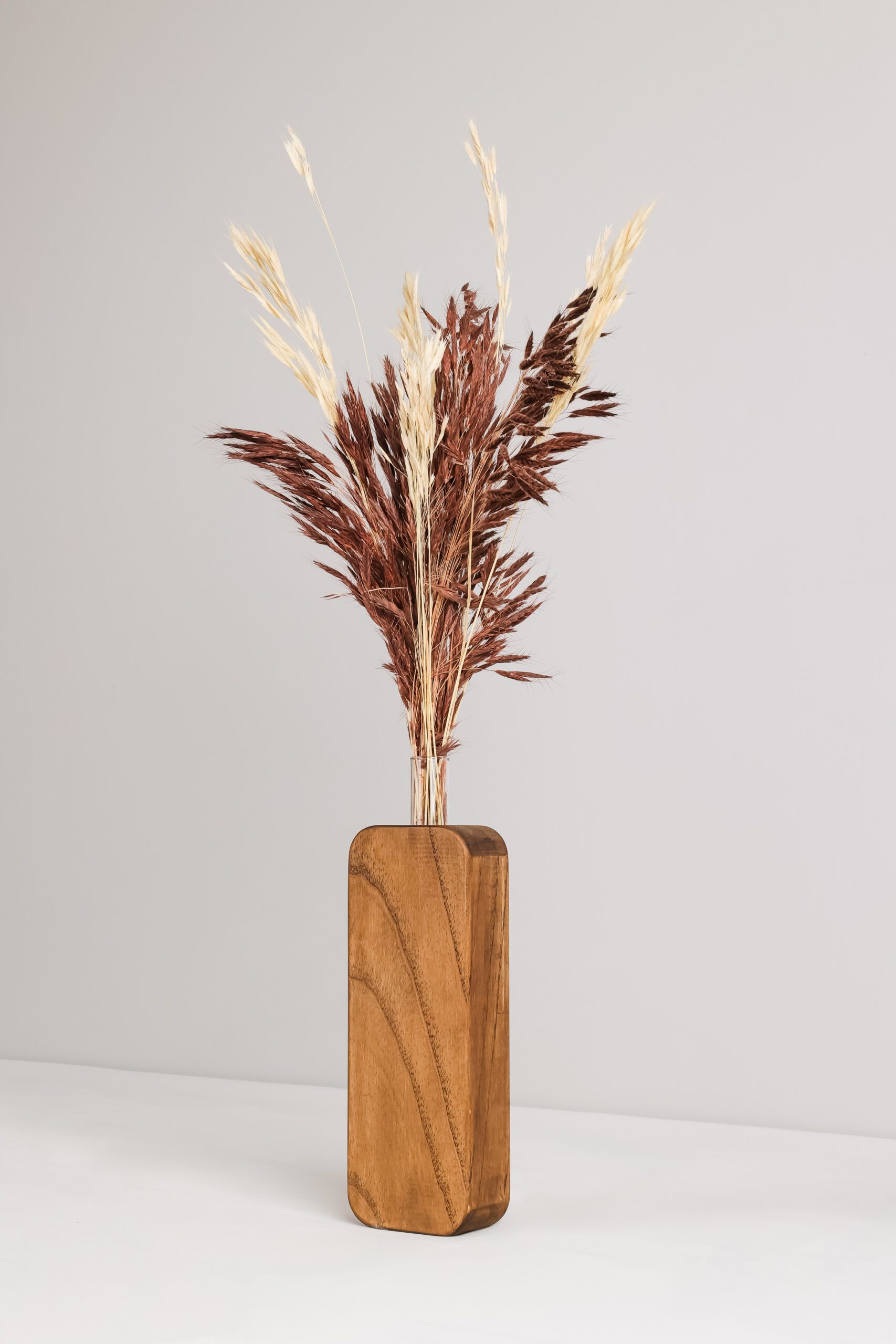 Bu rustik ahşap tabanlı kuru çiçek aranjmanı, kahverengi ve krem tonlarındaki doğal çiçek saplarıyla mekânlara sıcaklık getirir. Doğal ahşap tabanı ve dengeli renk kombinasyonu ile hem modern hem de rustik dekorasyonlara uyum sağlar. Minimalist yapısı sayesinde yaşam alanlarınıza sade ve huzurlu bir atmosfer kazandırır.