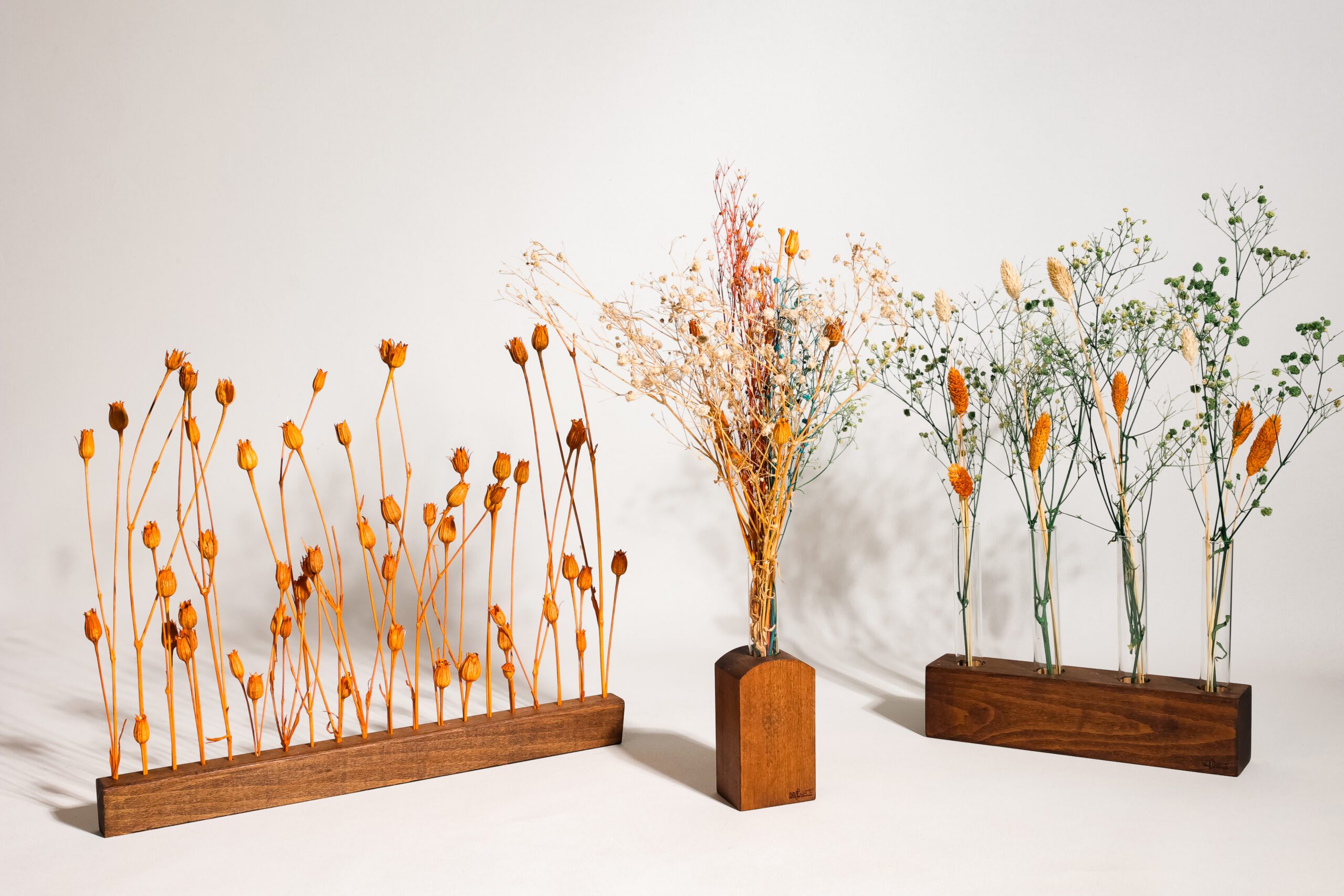 Sonbaharın Dokunuşları Serisi, mevsimin huzur verici renklerini ve doğal dokularını bir araya getirerek mekânlarınıza sıcaklık katıyor. El yapımı ahşap tabanlar üzerine yerleştirilmiş turuncu, krem ve yeşil tonlarındaki kurutulmuş bitkiler, doğanın zarafetini evinize taşıyor. Minimalist cam tüpler içindeki kuru çiçekler, doğadan esinlenen tasarımıyla göz alıcı bir atmosfer sunar. Sonbaharın Dokunuşları Serisi ile her mevsim evinizde huzuru ve estetiği hissedin!